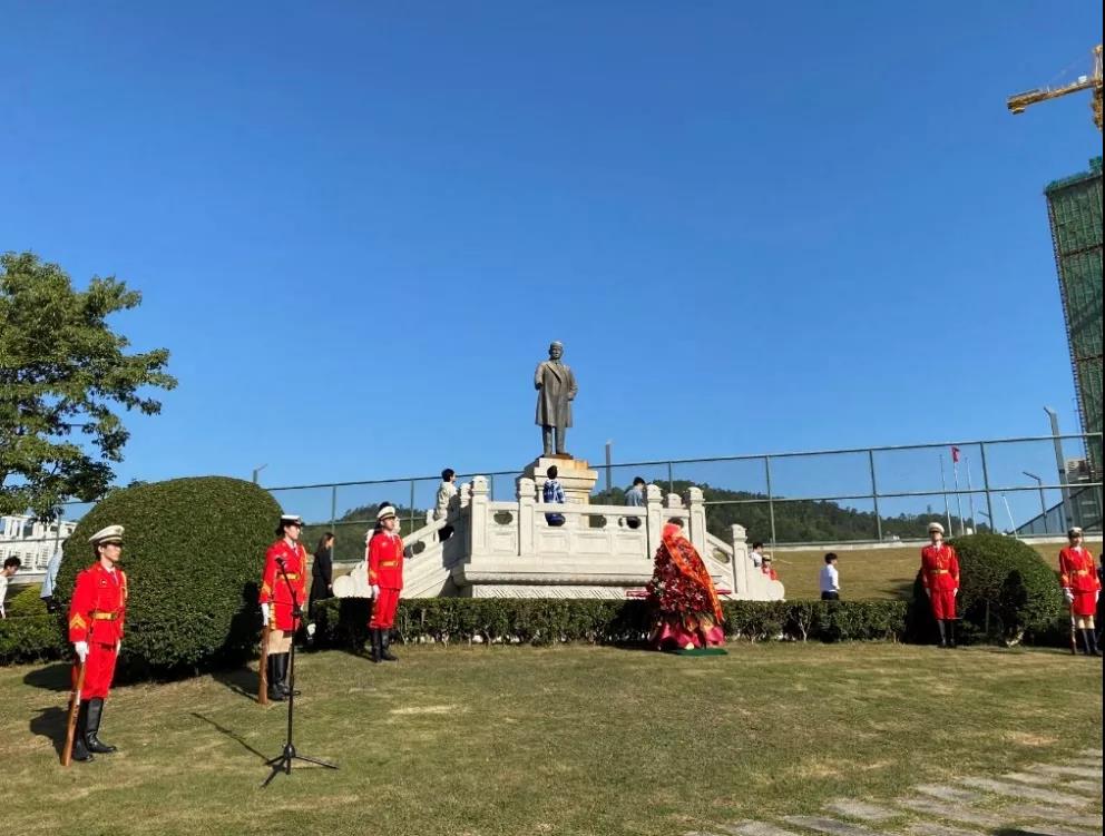 为纪念中国民主革命的伟大先驱孙中山先生诞辰155周年、孙中山先生亲手创办ylzzcom永利总站线路检测97周年,11月12日上午,珠海校区举行了校庆日向孙中山先生铜像献花仪式。永利官网党委书记曹新、团委书记麦伟立和10名学生代表参加。
