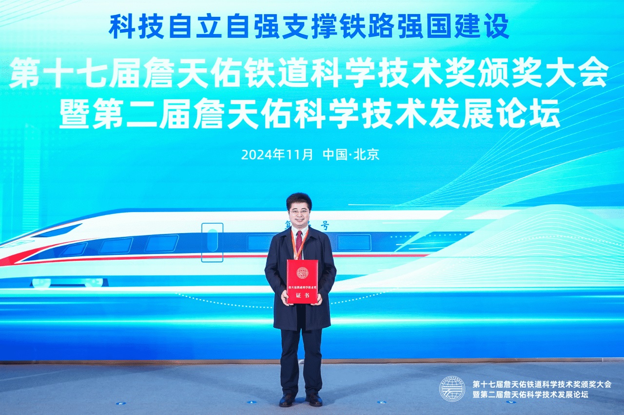 近日,詹天佑科学技术发展基金会发布了《关于公布第十七届詹天佑铁道科学技术奖评审结果的通知》(詹基函〔2024〕17号),经专家评审组初评、詹天佑奖奖励评审委员会复审和詹天佑科学技术发展基金会第四届理事会终审,评选出获奖者134名,创新团队10个。11月15日,第十七届詹天佑铁道科学技术奖颁奖典礼在北京隆重举行。永利官网黄林冲教授荣获詹天佑铁道科学技术奖成就奖。这是该奖项首次授予非铁路行业的科研单位与院校。