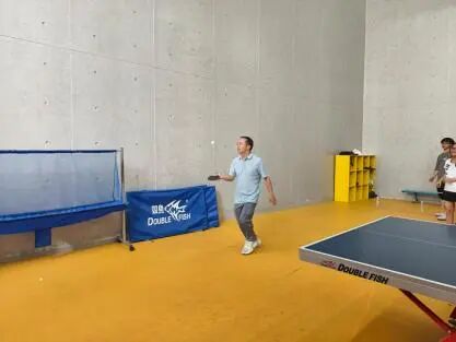 趣味赛设置了“连续击球进框”,共有15名师生积极参与。比赛要求选手从起点击球出发并击入指定框内,以完成时间决胜负。这项趣味性强、规则简单的比赛让不同水平的师生享受着乒乓乐趣。现场气氛轻松愉快,参赛选手们专注投入,在欢声笑语中体验运动的快乐。最终,蓝乐、唐希伟、钟涛分别获得趣味比赛冠亚军。