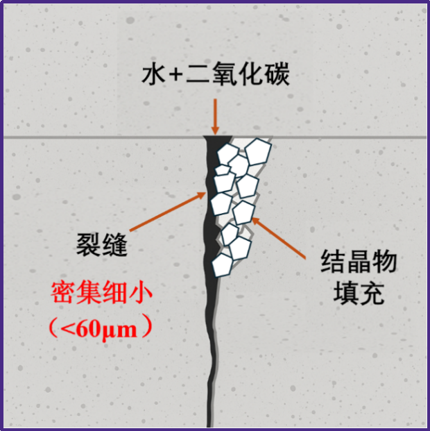 具有自愈、修复功能:像不小心擦伤手指,皮肤会自动愈合一样,ECC也能“愈合”自身的裂缝。遇到水、空气中的成分时,ECC自动“长出”结晶物把裂缝填上,如同伤口结痂。