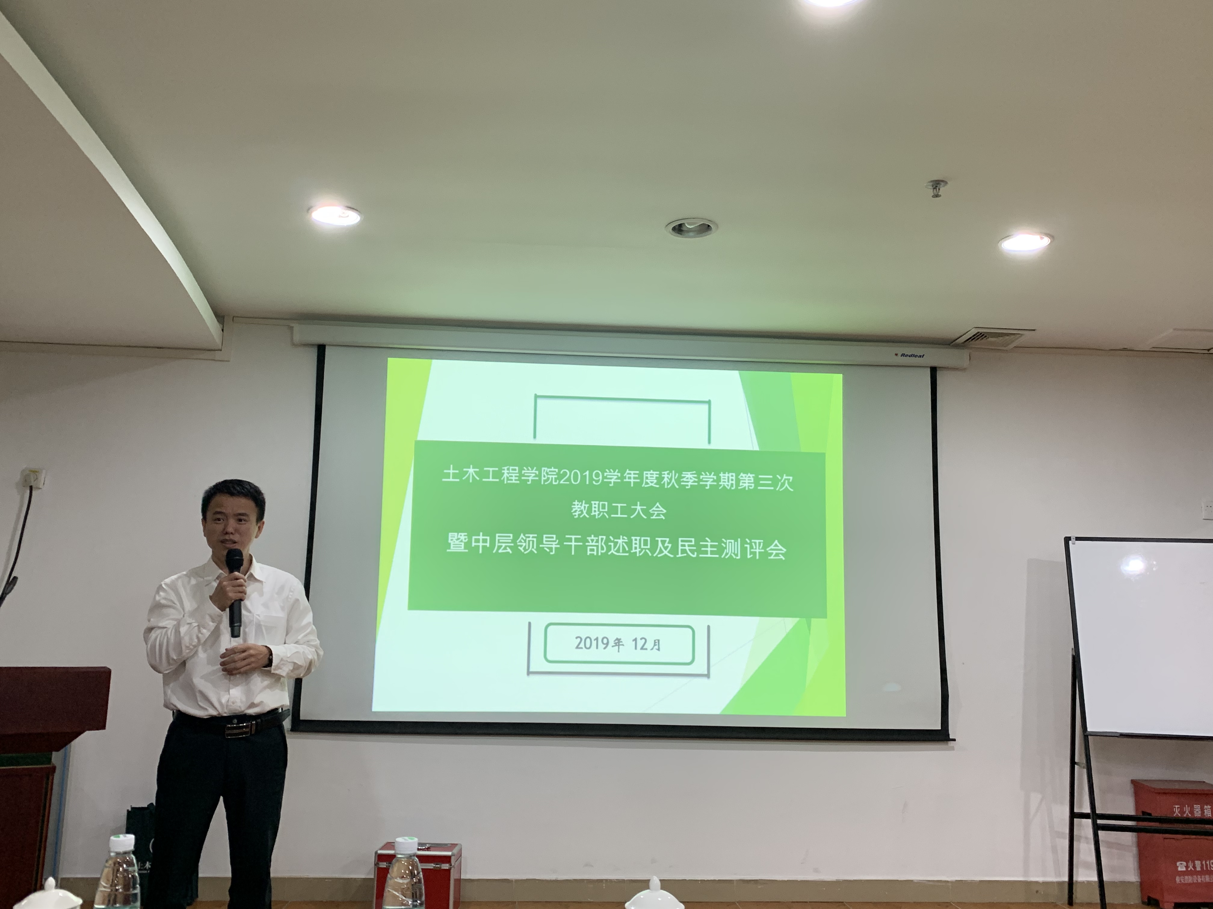 12月29日下午,ylzzcom永利总站线路检测本学期第三次教职工大会暨2019年度中层领导人员考核民主测评会在珠海校区举行。王复明院长、曹新书记、刘建坤副院长、殷敏副书记、林凯荣院长助理、院工会刘祖发主席及全体教职工出席会议。会上,院领导全面总结一年来学院各项工作取得的进展和成效,并作个人述职。曹新书记主持大会。
