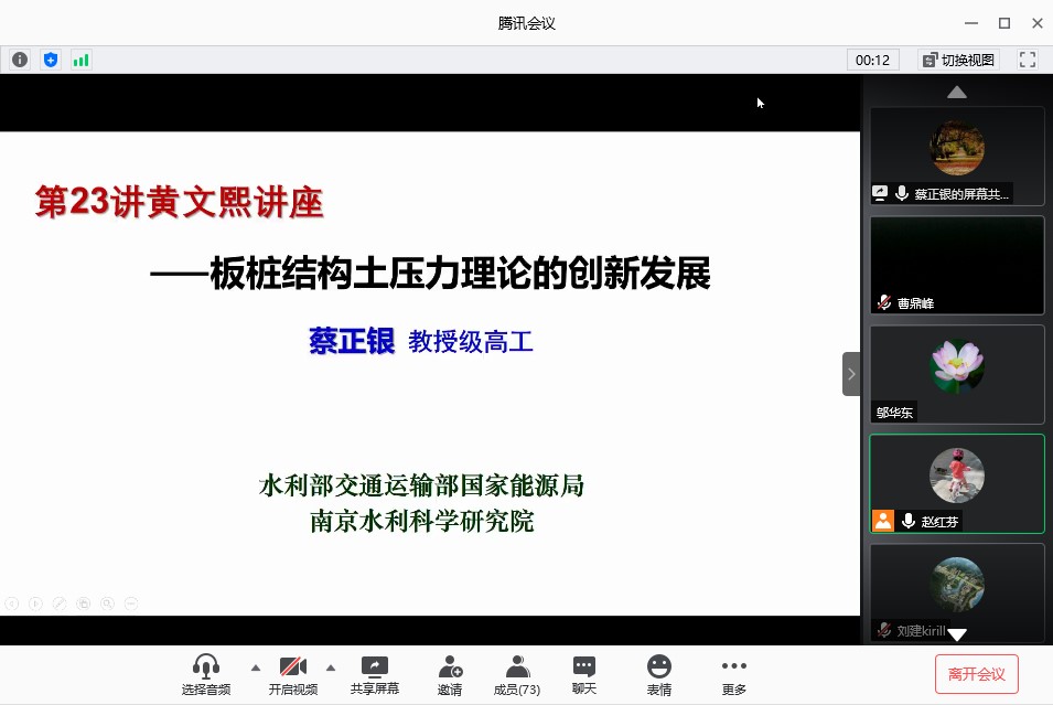 为进一步为研究生们营造学术创新氛围,拓宽学术视野,6月5日下午,南京水利科学研究院岩土工程研究所所长蔡正银教授级高级工程师受邀通过腾讯会议的形式在线给永利官网师生作了学术报告。本报告为23届黄文熙讲座的内容。报告会由赵红芬副教授主持,永利官网部分教师、研究生及本科生约100人参加了报告会。