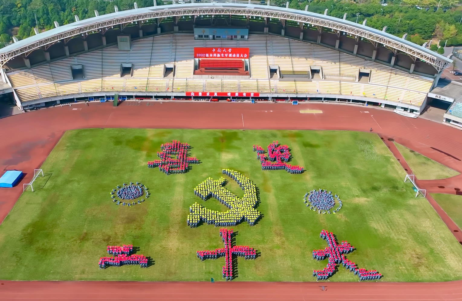 当朝晖划破白雾笼罩的晨空,当国旗徐徐上升,国旗下铿锵有力的演讲唤醒了秋日宁静的校园,开启了中南学子献礼二十大系列活动的序章。10月16日,“喜迎二十大,奋进新征程”主题献礼活动在beat365正版唯一官网必一各校区有序展开,师生纷纷参与其中,唱响红色旋律,以青春姿态迎接党的二十大胜利召开。看,“党徽”在训练场上熠熠生辉“团结就是力量”“听吧新征程号角吹响”……一大早,新校区体育场,阳...