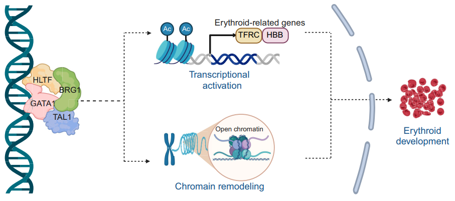 HLTF与GATA1协同激活红细胞发育过程中的转录程序与染色质重塑